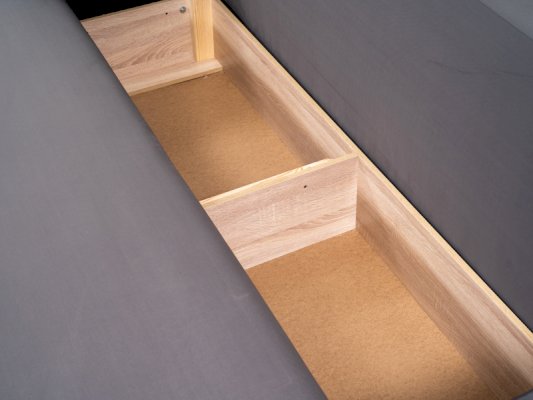 • Несущий короб, который можно использовать в качестве ящика для белья выполнен из ЛДСП, что позволяет производить влажную уборку и исключает повреждение белья занозами.