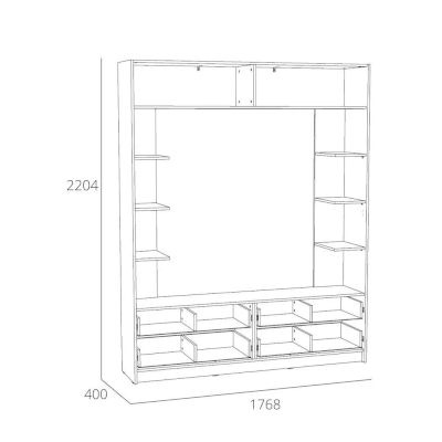 Шкафчики в верхней части стенки оснащены удобными дверками с открытием вверх. Скрытые полки за распашными дверками в средней части изделия придутся по вкусу любителям книг и интерьерных мелочей. Нижнюю часть стенки занимают четыре вместительных выдвижных ящика на шариковых направляющих, позволяющие аккуратно разместить вещи. Шкаф является модульным, что позволяет комбинировать его с другими шкафами и тумбами из одноименной коллекции. Лаконичный дизайн шкафа гармонично подчеркивается черными ручками.