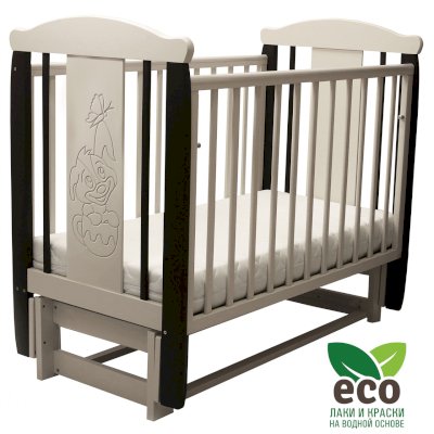 Кроватка "Соня 05" имеет механизм качания продольный маятник. Механизм качания фиксируется. Возможен вариант кровати с ящиком.