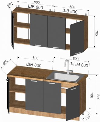 Шкаф верхний: 800х705х300 мм