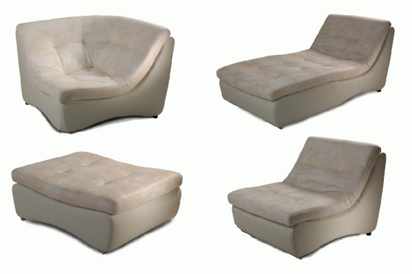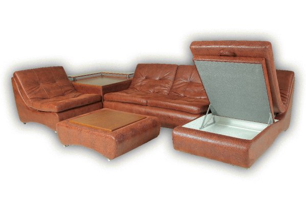 Комплектация: Высокоэластичный ППУ, вместительный ящик для белья, полки, столешница, два вида подлокотников, возможно изменения размеров модулей.