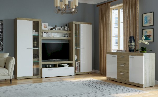 Дуб Сонома/Белый глянец
