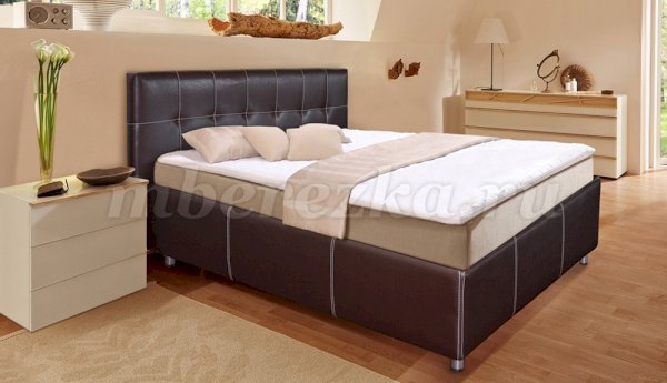 Строгий образ смягчают утяжки. В качестве наполнения используется мебельный поролон и настилочный материал ППУ. В стоимость кровати «Сонет» включено ортопедическое основание. Подъемный механизм на газлифтах. Модель имеет вместительный ящик для белья. Удобство этой модели кровати дополняет съемный чехол.