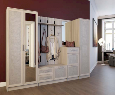 Фешенебельная прихожая «Флора» соответствует претензиям самых избалованных и требовательных покупателей. Отделка смотрится натурально и презентабельно. Особый шик комплекту добавляют декоративные вставки, фактура которых напоминает кожу крупной рептилии. Предусмотрено два цветовых варианта: светлый и гламурный ясень шимо, а также сдержанный и благородный венге.